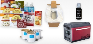 非常食、非常用トイレ、備蓄用トイレットペーパー、ポータブル電源などの、万一災害が発生した場合の災害対策用品を販売しております。